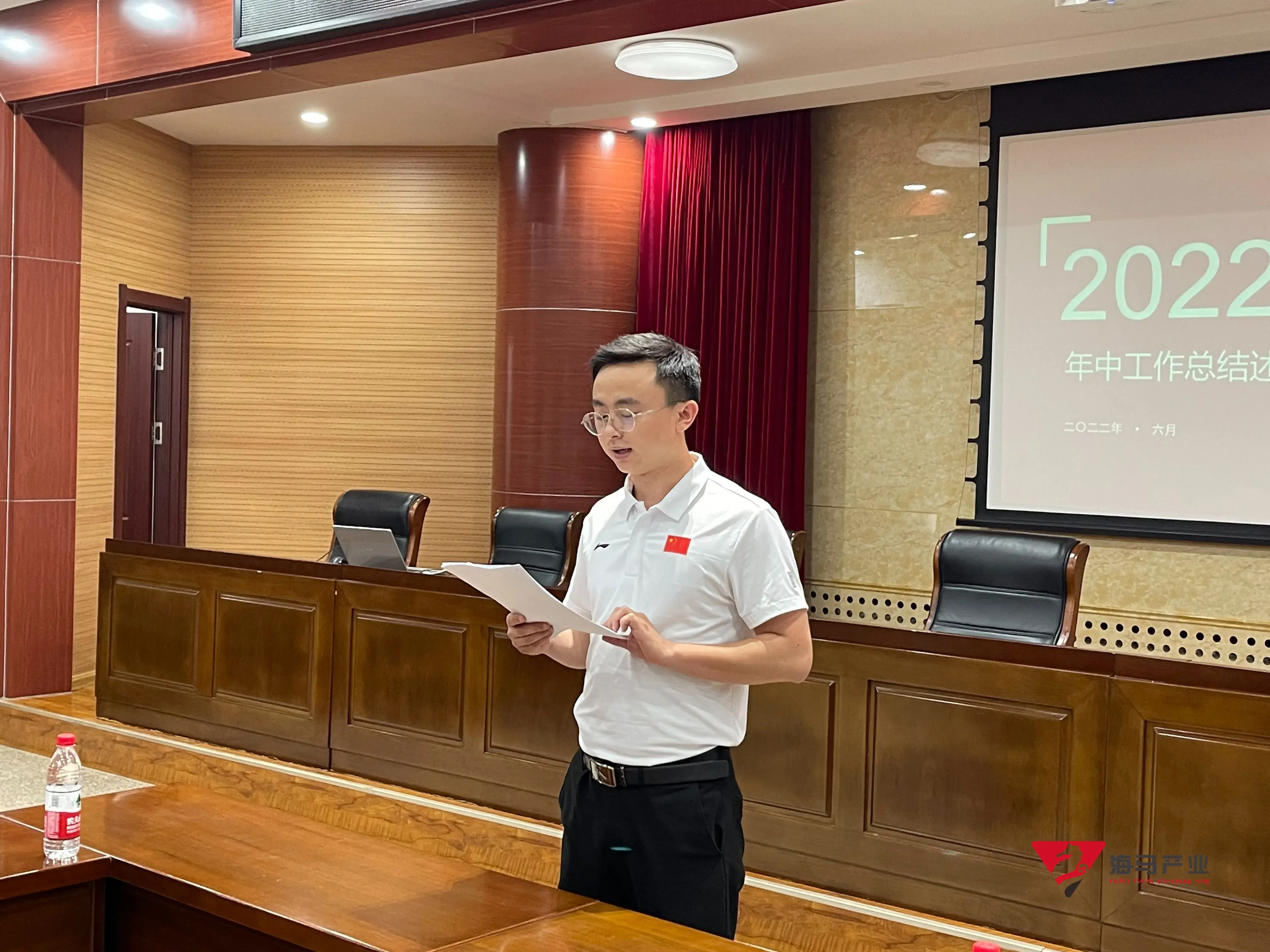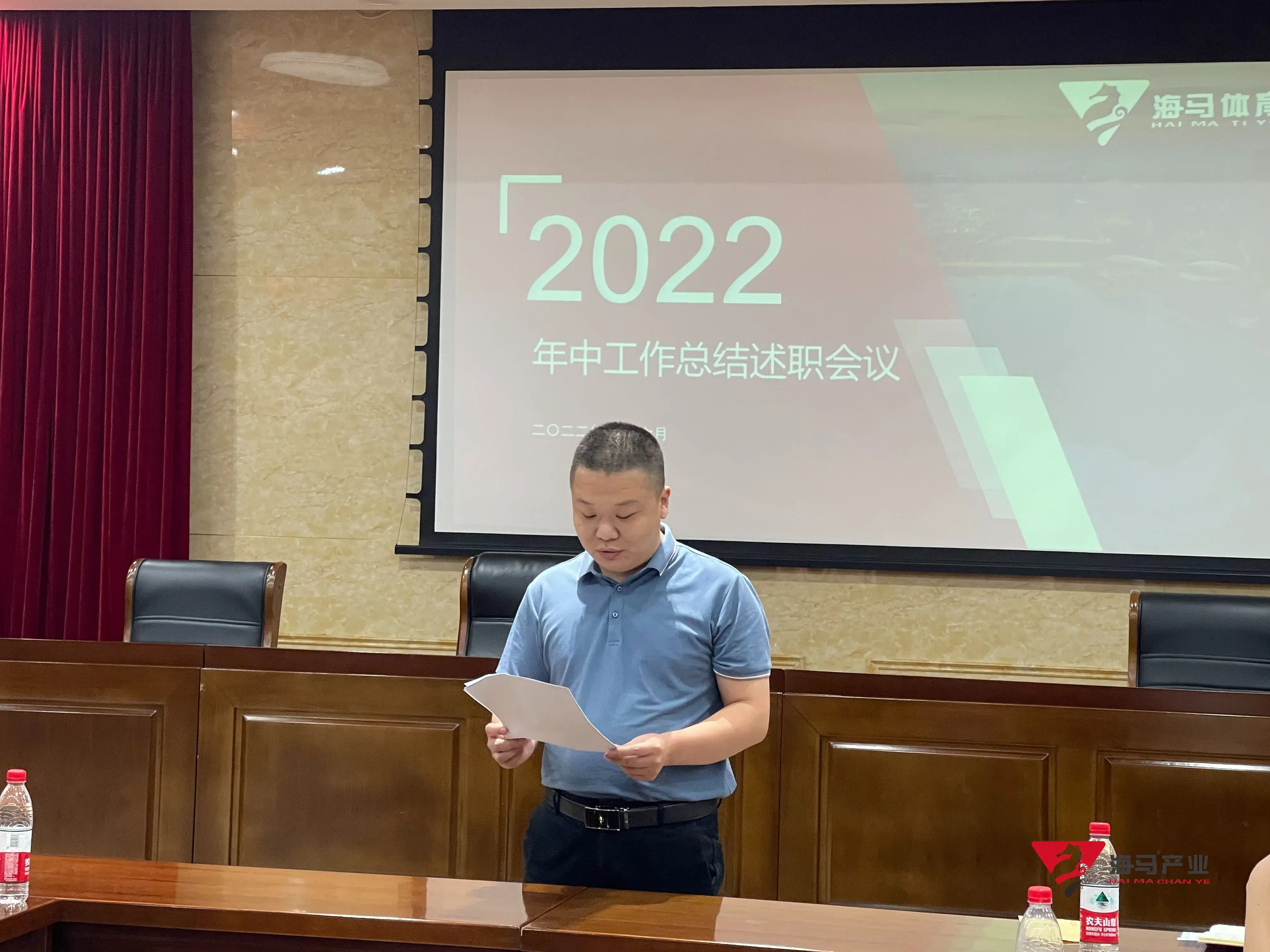 2022年6月29日下午,k8凯发文化产业集团在山东省体育中心二楼会议室召开年中工作总结述职会议,会议对上半年工作成果进行了总结汇报,并就下半年重点工作进行部署。总经理王海民出席了本次会议。会议由综合管理部负责人王永健主持。